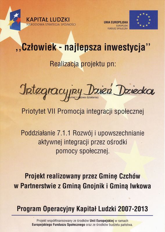 POŻEGNANIE SZÓSTOKLASISTÓW Dnia 18 czerwca 2009 r. w naszej szkole miała miejsce uroczystość pożegnania szóstoklasistów. Uczniowie klas szóstych żegnali się ze szkołą podstawową, w której spędzili sześć owocnych lat. Z tej okazji przygotowali specjalny program artystyczny. Były wiersze, wspomnienia, podziękowania za lata pracy i nauki, ciepłe słowa dla nauczycieli i rodziców, a także odrobina humoru. Szóstoklasistów żegnali koledzy i koleżanki z klas piątych. W zainscenizowanej Radzie Aniołów w sprawie testów zaliczeniowych dla uczniów klas szóstych, takie nauki jak nauka o drugim człowieku, nauka o świecie czy nauka na błędach własnych zostały naszym tegorocznym absolwentom jednogłośnie zaliczone. Pani Dyrektor wręczyła dyplomy i upominki tym uczniom, którzy przez cały okres nauki w naszej szkole godnie ją reprezentowali, osiagając bardzo dobre wyniki nauczania oraz zajmując wysokie miejsca w licznych konkursach przedmiotowych. Rodzicom wyróżnionych uczniów zostały wręczone listy gratulacyjne, a rodzicom aktywnie działającym w Radzie Rodziców specjalne podziękowania. Podczas spotkania doszło także do zaprzysiężenia nowego składu pocztu sztandarowego szkoły oraz przewodniczącego szkoły. Oto uczniowie, którzy podjęli się powyższych obowiązków: Przewodniczący Szkoły - Jakub Hamowski, kl.Vb Chorąży - Adrian Pabian, kl.Va Asysta - Małgorzata Franczyk, kl.Vb, Karolina Cichostępska, kl.Vb Na zakończenie uroczystości Pani Dyrektor skierowała do szóstoklasistów serdeczne życzenia pomyślności na nowej drodze szkolnego życia, wielu sukcesów w rozwijaniu swych talentów i zainteresowań. mgr Anna Zych Zobacz więcej.... DZIEŃ DZIECKA Dnia 1 czerwca odbył się w naszej szkole turniej sportowy pod hasłem "Integracyjny Dzień Dziecka". Uczniowie klas IV-VI wspólnie z uczniami Gimnazjum wzięli udział w rozgrywkach o Puchar Sołtysa wsi Uszew. Chłopcy rywalizowali grając w piłkę nożną, dziewczęta w piłkę koszykową. W pierwszej kategorii zwycięzcami okazali się reprezentanci Szkoły Podstawowej, chłopcy z klasy VIa, natomiast wśród dziewcząt zwyciężyły gimnazjalistki z klasy II. Z racji deszczowej pogody impreza miała miejsce na sali gimnastycznej. Nikt się jednak nie nudził. Oprócz rozgrywek sportowych odbyły się także konkursy sprawnościowe. Przy gorącym dopingu ze strony publiczności rozegrano między innymi bieg w workach, rzut do celu czy wyścig z przeszkodami. Tegoroczny Dzień Dziecka w naszej szkole był współfinansowany z Europejskiego Funduszu Społecznego oraz z budżetu państwa. Z tej okazji każdy uczeń otrzymał napój i słodki upominek. Publiczna Szkoła Podstawowa i Publiczne Gimnazjum w Uszwi serdecznie zapraszają na festyn 24 maja o godz.1530