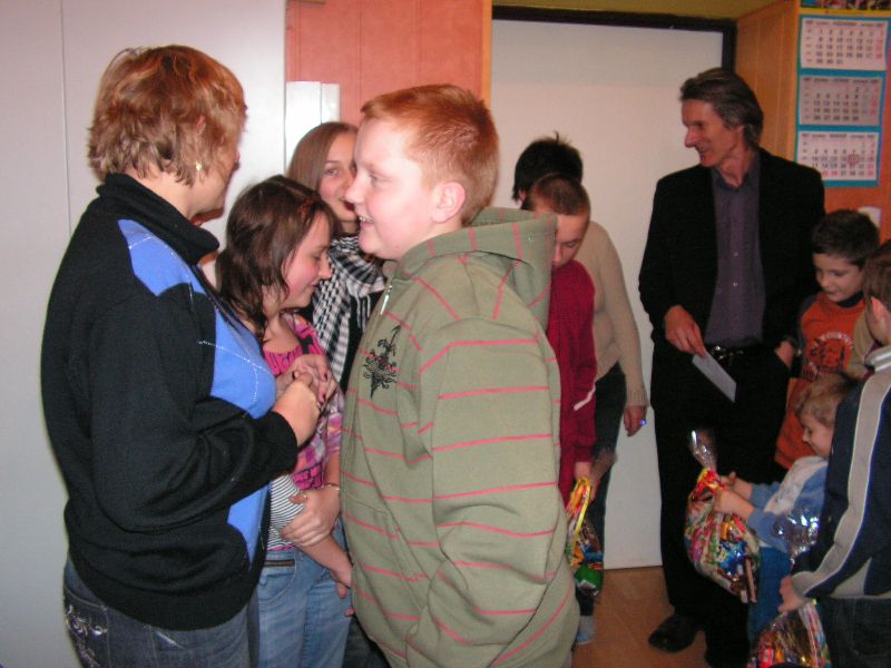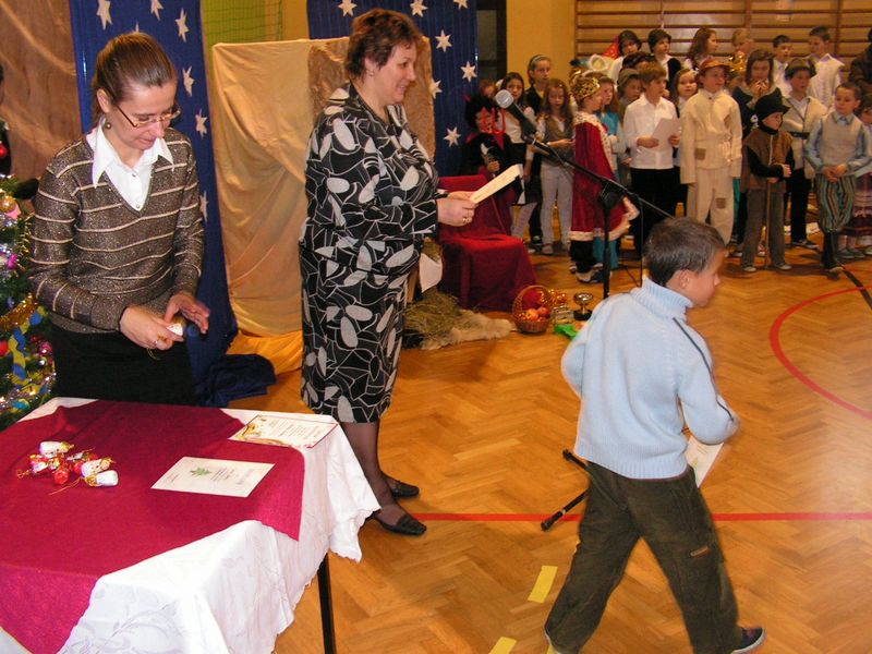 Klasa I:1. Konrad Kaczmarczyk 2. Michał Pabjan 3. Wiktoria Wąs Klasa II: 1. Natalia Golec 2. Konrad Rams 3. Natalia Wawryka 4. Patryk Zając Klasa III: 1. Kamil Niewola 2. Kinga Pabjan 3. Patryk Kałuża 4. Marcin Rąpała 5. Sławomir Toboła Klasa IVa: 1. Artur Babraj 2. Ewelina Nowak 3. Monika Zięć Klasa IVb: 1. Mariola Smaluch 2. Katarzyna Toboła 3. Szczepan Bober Klasa Va: 1. Kamil Robak 2. Grzegorz Wawryka Klasa Vb: 1. Dawid Bober 2. Grzegorz Śledź Klasa VIa: 1. Klaudia Rams Klasa VIb: 1. Krystian Baran 2. Marlena Burek 3. Arkadiusz Kaczmarczyk 4. Martyna Kotarba 5. Natalia Reczek mgr Maria Górka Nasza szkoła uzyskała od Moltiva sp. z o.o. darmowe licencje na używanie programu Emilek 2.0 dla szkół. Przedstawienie " TWÓJ DEMON - AGRESJA " 5 lutego w ramach realizacji zadań programu profilaktycznego odbyły się w naszej szkole zajęcia teatralne pt. "Twój demon - agresja" przygotowane przez Teatr Profilaktyczny "Horyzont" z Krakowa, który współpracuje z różnymi placówkami oświatowymi w całej Polsce. Przedstawienie bardzo spodobało się naszym wychowankom. Poruszało bowiem ważny problem - zjawisko agresji w szkole. Uczniowie mogli dokonać oceny różnych zachowań związanych z przemocą fizyczną czy psychiczną, a także zdobyć wiedzę, jak zachować się w podobnych sytuacjach. Ochotnicy mieli też szansę zaistnieć na scenie. Kilkoro uczniów wcieliło się w wyznaczone im przez profesjonalnych aktorów role, co wzbudziło aplauz publiczności. Dzięki tak przygotowanym zajęciom nasi uczniowie z pewnością lepiej będą sobie radzić z trudnymi emocjami - złością, poczuciem odrzucenia, agresją. mgr Anna Zych Zabawa choinkowa 17 stycznia odbyła się w naszej szkole zabawa choinkowa. Na licznie przybyłych uczniów czekała pięknie przystrojona sala gimnastyczna. Dzieci z klas I-III przebrały się w fantazyjne kostiumy. Na balu zaroiło się od postaci bajkowych; księżniczek, cyganek, klaunów, zjawił się nawet Harry Potter - słynny młody czarodziej. Uczniowie klas IV-VI zaprezentowali samodzielnie przygotowane układy taneczne, wśród których największą furrorę zrobił występ "Dody" i jej świty. Prócz tańców były także konkursy organizowane przez Samorząd Uczniowski. Wcale nie tak łatwo było ugryźć jabłko uwiązane na nitce czy nakarmić kolegę jogurtem, mając przy tym zawiązane oczy. Rada Rodziców zatroszczyła się o smaczny poczęstunek dla bawiących się pociech. Ciepłe hamburgery, pyszne ciasta i soki owocowe zaspokoiły apetyty nawet najwytrwalszych tancerzy. mgr Anna Zych Zobacz więcej.... Wizyta w Domu Dziecka w Jasieniu Już po raz dwunasty uczniowie Szkoły Podstawowej oraz Gimnazjum wraz z opiekunami Samorządu Uczniowskiego obu szkół odwiedzili wychowanków Domu Dziecka w Jasieniu. Wrażliwość na los drugiego człowieka oraz umiejętność dzielenia się były głównym celem i przesłaniem tej akcji. Dzięki ofiarności uczniów i nauczycieli obu szkół udało się zebrać kwotę 550 zł. Do życzeń noworocznych dołączyliśmy słodycze. Spotkanie z wychowankami Domu Dziecka oraz Panią Dyrektor przebiegło w miłej i serdecznej atmosferze. mgr Sabina Krakowska Koncert duetu akordeonistów