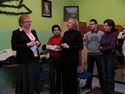 KIERMASZ "ŚWIĄTECZNY SEZAM" Dnia 13 grudnia 2010 r. odbył się w naszej szkole Kiermasz "Świąteczny Sezam", organizowany w ramach akcji "SKO jest OK", ogłoszonej przez PKO Bank Polski. Kiermasz ten miał formę konkursu i składał się z 3 poziomów: I poziom to konkurs na kartkę świąteczną, II - sprzedaż ozdób choinkowych oraz III poziom - prezentacja artystyczna każdej klasy na temat oszczędzania. Na każdym poziomie klasy otrzymywały punkty. Klasa, która zebrała łącznie największą ilość punktów, otrzymała tytuł "Najbardziej przedsiębiorczej klasy w szkole". Uczniowie podczas kiermaszu sprzedawali wcześniej wykonane kartki świąteczne oraz własnoręcznie przygotowane ozdoby choinkowe, m.in. z papieru, masy solnej czy ciasta. Poprzez tę akcję dzieci uczyły się gospodarności, pracowitości oraz nabywały umiejętność zarządzania pieniądzem. Zobacz więcej.... Uzbierana suma z kiermaszu to 387 zł. Pieniądze te uczniowie wpłacili na SKO i pod koniec roku szkolnego przeznaczą je na wybrany przez siebie cel: dofinansowanie wycieczki, zakup pomocy szkolnych itp. Łączna kwota 387 zł rozkłada się następująco na klasy: 1. Klasa VI b - 87,70 zł - I miejsce 2. Klasa V - 68,20 zł 3. Klasa III - 55 zł 4. Klasa II - 48,70 zł 5. Klasa VI a - 48,20 zł 6. Klasa IV - 31,20 zł 7. Klasa I a - 27 zł 8. Klasa I b - 21 zł. Ponadto sprzedawane przez uczniów kartki brały również udział w konkursie na najładniej i najdokładniej wykonaną. Komisja konkursowa, w składzie: p. Maria Górka, p. Ilona Palonek i p. Anna Zych, wyróżniła prace następujących uczniów: I miejsce - Kornelia Warkocz, kl. III II miejsce - Julia Bober, kl. I a III - miejsce - Katarzyna Pabian, kl. II oraz wyróżnienia: Patryk Smoleń, Kinga Rams, Gabriela Kowalczyk, Joanna Tasior. w klasach IV-VI: I miejsce - Anna Paterek, kl. V II miejsce - Szczepan Bober, kl. VI b III miejsce - Klaudia Jaroszek, kl. IV. Wyróżnienia: Agnieszka Jarosińska, Izabela Klecka, Aleksandra Legutko, Bartłomiej Golec. Na trzecim poziomie konkursu klasy prezentowały krótki program na temat oszczędzania (piosenka, wiersze, skecz). W tej konkurencji zwycięstwo i tytuł GRAND PRIX otrzymała klasa IV. Po podliczeniu punktów przez komisję konkursową, której przewodniczyła pani dyrektor Bogumiła Jagielska TYTUŁ "Najbardziej przedsiębiorczej klasy w szkole" otrzymały z łączną liczbą 40 punktów aż 3 klasy: klasa II, klasa IV i klasa VI b. Pani Dyrektor wręczyła nagrody podczas poranka wigilijnego, 22 grudnia 2010 r. Wszystkim uczniom serdecznie gratulujemy! mgr Anna Cichostępska GMINNE ZAWODY SZACHOWE W dniu 8 grudnia 2010 roku w Publicznej Szkole Podstawowej w Gosprzydowej odbyły się Gminne Zawody Szachowe Szkół Podstawowych gminy Gnojnik. Naszą szkołę reprezentowali uczniowie klasy VIb: Szczepan Bober, Przemysław Baran i Dominik Kowalczyk. Dominik zajął III miejsce i znalazł się w reprezentacji gminy Gnojnik na Igrzyska Młodzieży Szkolnej w szachach. mgr inż. Maria Górka ANDRZEJKOWA ZABAWA 25 listopada Samorząd Uczniowski zorganizował zabawę andrzejkową. Zgodnie z tradycją najważniejszą rolę pełniły różnorodne wróżby, których jak co roku nie brakowało. Cieszyły się one ogromnym zainteresowaniem wszystkich, zarówno uczniów jak i nauczycieli. Dzieci chętnie dzieliły się ze sobą przepowiedniami na temat swojej przyszłości. Nietęgie miny mieli jedynie uczniowie, którym wywróżono kłopoty w szkole lub pecha w najbliższym czasie. Dzięki szkolnym DJ - om Patrykowi Bobrowi i Dominikowi Kowalczykowi nie zabrakło dobrej i różnorodnej muzyki. Samorząd przygotował także bufet. Wszyscy uczniowie świetnie się bawili na tej ostatniej już w tym roku kalendarzowym imprezie. mgr Sabina Krakowska Zobacz więcej.... Konkurs fotograficzny "Cuda przyrody w Powiecie Brzeskim" Konkurs fotograficzny zorganizowany był przez Starostwo Powiatowe w Brzesku, a celem konkursu była edukacja ekologiczna, promowanie piękna i różnorodności siedlisk przyrodniczych w powiecie brzeskim, nauka za pomocą fotografii o różnorodności gatunkowej flory i fauny powiatu brzeskiego, a także o harmonijnym współistnieniu człowieka z naturą. Do konkursu zgłoszono 106 fotografii, wśród których były fotografie: Fotografia pt." Masz orzecha?" wykonana przez Wiktorię zajęła II miejsce. mgr inż. Maria Górka "PRZYDROŻNA KAPLICZKA" Dnia 25.10.2010 roku uczniowie naszej szkoły mieli możliwość obejrzenia przestawienia kukiełkowego pt: "Przydrożna kapliczka". Pięknie wykonane lalki, scenografia i efekty dźwiękowe sprawiły, że uczniowie z zainteresowaniem śledzili losy rodzin biednego szewca i bogatego młynarza. Była to także lekcja o pokorze i miłosierdziu, gdzie świat wartości materialnych zderza się ze światem duchowym. Przesłanie utworu można zawrzeć w słowach: " Człowiek jest wielki, nie przez to, co ma, nie przez to, kim jest lecz przez to, czym dzieli się z innymi" ( Jan Paweł II) mgr Ilona Palonek Nasza szkoła przystąpiła do projektu DiAMEnT ( "Dostrzec i aktywizować możliwości, energię, talenty"). Wybrani uczniowie pisali testy diagnozujące uzdolnienia w zakresie matematyki, technologii informacyjno-komunikacyjnych i języka angielskiego. Dwóch uczniów uzyskało wyniki powyżej średniej. Są to: Obydwaj mają możliwość uczestniczenia w zajęciach w Powiatowym Ośrodku Wspierania Uczniów Zdolnych, a tym samym rozwijania swoich uzdolnień. mgr inż. Maria Górka