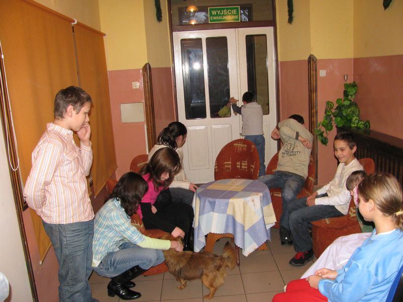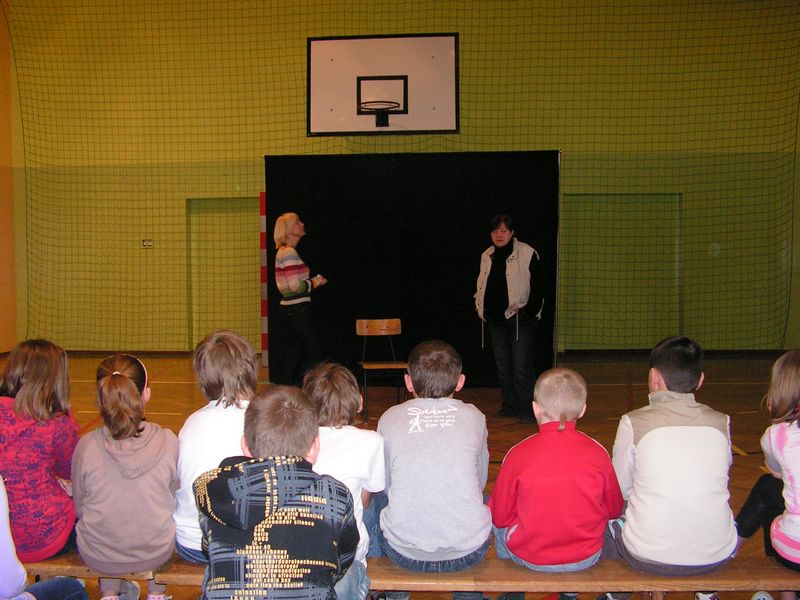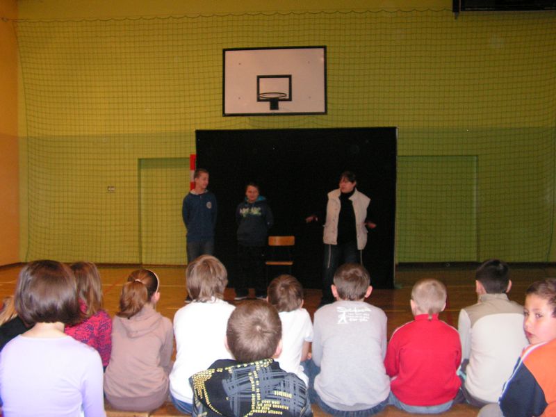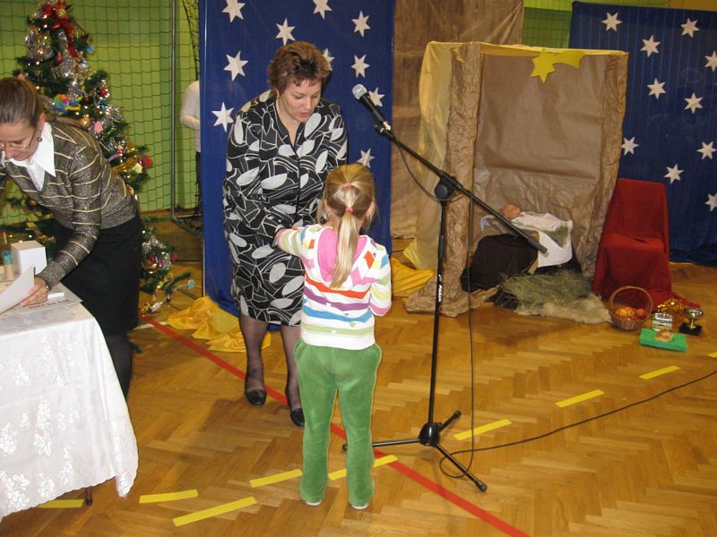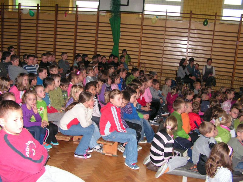 Ziemia nie jest własnością człowieka! Zobacz więcej.... SPEKTAKL PROFILAKTYCZNY LEKCJA OTWARTA Z JĘZYKA ANGIELSKIEGO "ŚWIĘTA WIELKANOCNE" 11 kwietnia 2011 r. odbyła się w naszej szkole lekcja otwarta z języka angielskiego. Wzięły w niej udział uczennice klasy V (w klasie obowiązuje podział na grupę chłopców oraz dziewczynek). Tematem przewodnim były Święta Wielkanocne, słownictwo oraz zwyczaje polskie i angielskie związane z tym okresem. W czasie lekcji kształtowano następujące umiejętności kluczowe: poprawna wymowa, formułowanie krótkich odpowiedzi, umiejętność pracy z tekstem, umiejętność posługiwania się językiem angielskim w praktyce, a także rozwijanie kreatywności, przełamywanie oporów przed używaniem języka obcego w praktyce. Podczas zajęć wykorzystano następujące metody pracy: tekstu przewodniego, metodę aktywizującą - inscenizację, ćwiczeń przedmiotowych, oglądową - pokaz, grę dydaktyczną oraz metodę praktyczną. Pani Dyrektor oraz nauczyciele obecni na lekcji pozytywnie ocenili jej zawartość oraz przebieg. Wiele satysfakcji sprawiły również aktywność i zaangażowanie uczennic podczas lekcji. mgr Sabina Krakowska Zobacz więcej.... POWITANIE WIOSNY ZMIEŃ LEŻENIE LENIUCHU NA ODROBINĘ RUCHU!!! Zobacz więcej.... ZABAWA CHOINKOWA 29 stycznia 2011 roku odbyła się w naszej szkole długo oczekiwana zabawa choinkowa. Uczniowie klas I-III bawili się w godzinach od 1000 do 1300, natomiast uczniowie starszych klas od 1300 do 1600. Liczne konkursy i zabawy uatrakcyjniły coroczny bal świąteczny. Duże emocje wzbudził pokaz mody w wykonaniu uczniów klas IV-VI. Zwycięzcami w tej konkurencji okazali się uczniowie klasy VIb, którzy podbili serca publiczności oraz jury uroczymi strojami pszczółki Mai i Gucia. Drugie miejsce zajęli uczniowie klasy VIa prezentujący fantazyjną kreację balową oraz obowiązkowy tej zimy strój dla narciarza. Kolejne miejsce przypadło w udziale uczniom klasy IV, którzy postawili na najmodniejszą w tym sezonie kratę. Z ciekawą propozycją wystąpili uczniowie klasy V. Strój kowbojski z pewnością spodobał się niejednemu chłopcu, dziewczynki z kolei zerkały z ciekawością na tajemniczą damę, skrywającą swe oblicze za piękną turkusową maską ze strusim piórem. Zabawa udała się znakomicie. Między tańcami i zabawami znalazł się też czas na chwilę wytchnienia. Rada Rodziców przygotowała dla uczniów smaczny poczęstunek: ciasta, hamburgery oraz soki. mgr Anna Zych Zobacz więcej.... WIZYTA W DOMU DZIECKA W JASIENIU 10 stycznia przedstawiciele Szkoły Podstawowej: Aleksandra Legutko, Agnieszka Jarosińska - uczennice klasy VI a, Mariola Smaluch oraz Paweł Biernat - uczniowie klasy VI b wraz z opiekunem Samorządu Uczniowskiego odwiedzili Dom Dziecka w Jasieniu. Zbieranie pieniędzy w okresie przedświątecznym na ten szczytny cel stało się tradycją naszej szkoły. Uczniowie klas I-VI już po raz czternasty chętnie włączyli się do akcji zbiórki monet w klasach. Zebrana kwota w wysokości 330 zł, słodycze oraz najlepsze życzenia noworoczne zostały złożone na ręce Pani Dyrektor tamtejszej placówki. Samorząd Uczniowski dziękuje wszystkim uczniom, którzy postanowili pomóc dzieciom z Domu Dziecka. To dzięki wam napewno spełni się jedno z marzeń waszych rówieśników. mgr Sabina Krakowska