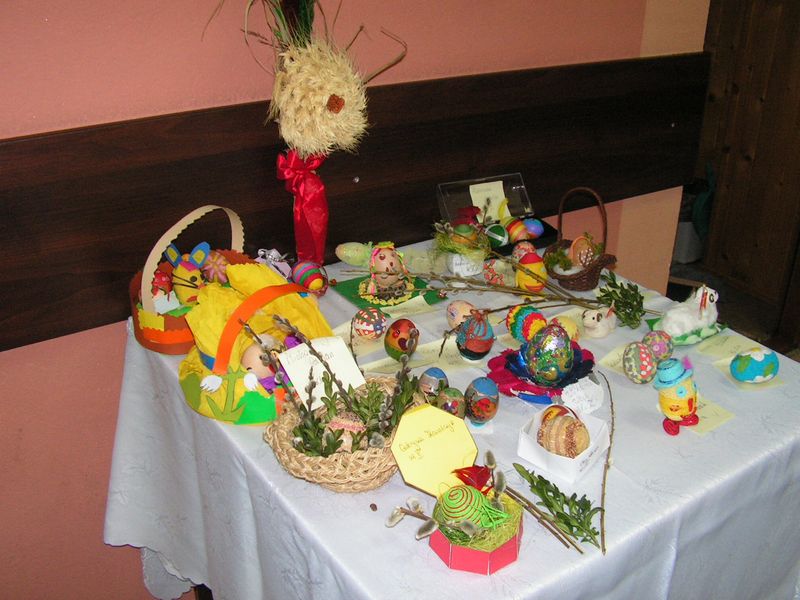 TURNIEJ WIEDZY Z PRZYRODY "1 z sześciu" - pod takim hasłem odbył się Turniej wiedzy z przyrody. Do rywalizacji przystąpiło po dwóch uczniów z klas IV - VI wydelegowanych przez kolegów, aby godnie reprezentować swoje klasy. Pan Bogdan Toboła wraz ze swymi asystentkami w sposób profesjonalny przeprowadził eliminacje. Do ścisłego finału dostały się drużyny klas Vb, VIa i VIb. Zwyciężyła drużyna z klasy VIb w składzie - Martyna Kotarba i Arkadiusz Kaczmarczyk, II miejsce zdobyła drużyna z klasy VIa w składzie - Oliwia Czchowska i Patrycja Ząbkowska a III miejsce zajęła drużyna z klasy Vb w składzie - Jakub Hamowski i Grzegorz Śledź. Wszyscy uczestnicy turnieju a także pozostali uczniowie klas nagrodzeni zostali słodyczami. Gratulujemy wszystkim uczestnikom obszernej wiedzy z przyrody, a szczególnie drużynie z klasy VIb. mgr inż. Maria Górka ZABAWA DYSKOTEKOWA Dnia 22 kwietnia w naszej szkole odbyła się zabawa dyskotekowa dla uczniów klas IV-VI zorganizowana przez Samorząd Uczniowski. Licznie przybyli chłopcy i dziewczęta wspaniale bawili się w rytm nowoczesnej muzyki. Zabawę uatrakcyjniło profesjonalne oświetlenie. Na bawiących się czekały w bufecie ciepłe zapiekanki i chłodne napoje. Na najwytrwalszych tancerzy czekała niespodzianka - słodycze. KONKURS WIELKANOCNY Zgodnie z wielkanocną tradycją naszej szkoły, w okresie przedświątecznym Samorząd Uczniowski ogłosił konkurs na najpiękniejsze wielkanocne ozdoby - pisanki i palmy. Liczni uczestnicy wykazali się niezwykłą inwencją twórczą. Pisanki wykonano za pomocą różnych materiałów - włóczki, kolorowego papieru, plasteliny, suszonych kwiatów, a nawet bakalii; migdałów, rodzynek i kokosu. Jury konkursu stanęło przed trudnym wyborem, ponieważ każda zgłoszona praca miała swój niepowtarzalny urok. Po długich naradach udało się jednak wyłonić autorów najpiękniejszych ozdób. Oto zwycięzcy w poszczególnych kategoriach: Konkurs na palmę wielkanocną I miejsce - Adrian Pabjan kl.Va II miejsce - Gabriela Jagielska kl.IVb III miejsce - Karolina Czuba kl.I Konkurs na pisankę Klasy I-III I miejsce - Julia Nosewicz kl.II II miejsce - Krzysztof Radzięta kl.I III - Klaudia Jaroszek kl.II Klasy IV-VI I miejsce - Damian Jewuła - kl.IVa II miejsce - Sylwia Musiał kl.VIb III miejsce - Piotr Wnęk kl.Va Laureatom i wszystkim uczniom, którzy wzięli udział w konkursie raz jeszcze gratulujemy. Samorządowi Uczniowskiemu dziękujemy za miłe wprowadzenie całej społeczności szkolnej w świateczny nastrój. mgr Anna Zych