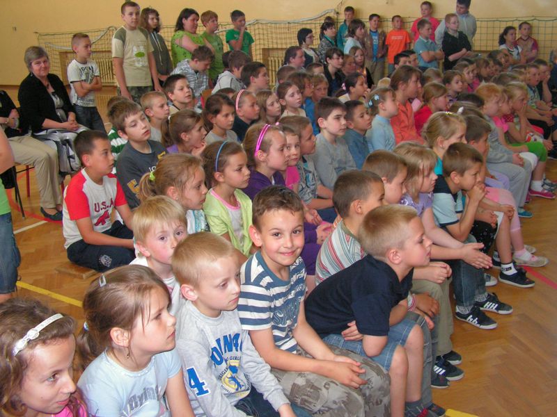 Jak co roku w naszej szkole obchodziliśmy Dzień Ziemi. Z tej okazji odbyła się akademia poświęcona potrzebie ochrony środowiska. Uczniowie klas piątych przygotowali inscenizację teatralną propagującą konieczność dbania o czystość naszej planety. Współczesna wersja baśni o Babie Florze, Jasiu i Małgosi przypomniała wszystkim, jak należy zachowywać się w lesie. Wzbudziła także ogólną wesołość. Szczególnie postać czarownicy, która dbając o czystość powietrza używa ekologicznego pieca, potrafi korzystać z telefonu komórkowego, a biednego Jasia tuczy niezdrową żywnością z McDonalda, przypadła wszystkim do gustu. Młodzi aktorzy, którzy z dużym zacięciem aktorskim odegrali swe role, zebrali zasłużone brawa. Program artystyczny z pewnością wpłynął na świadomość ekologiczną naszych uczniów i pomoże im świadomie troszczyć się o dobro środowiska naturalnego. mgr Anna Zych Zobacz więcej.... SPOTKANIE Z PISARZEM W dniu 23 kwietnia naszą szkołę odwiedził Andrzej Grabowski, poeta i prozaik mieszkający w niedalekich Ciężkowicach. W spotkaniu z autorem popularnych utworów dla dzieci i młodzieży udział wzięli uczniowie klas I-VI. Twórca tak znanych książek jak "Przygody skrzata Wiercipiętka", "Fikus, Zelek i Ciężkogłowy" czy "Funia, Kicia i cała reszta" opowiadał o swojej pracy, dorobku literackim i zainteresowaniach. Laureat Orderu Uśmiechu przyznał, że wartość dziecięcego uśmiechu jest ogromna, przełamuje lody, zbliżając ludzi do siebie. Przypomina nam o dziecku, które jest w każdym z nas. Dziecięcy uśmiech uskrzydla. Z przywołaniem go na uczniowskie twarze Autor poradził sobie bez trudu. Odczytanie fragmentów najbardziej znanych utworów, pełnych ciepła i humoru, wywoływało wśród zebranych salwy śmiechu. Na zakończenie spotkania uczniowie mogli zakupić książki Andrzeja Grabowskiego, a także zdobyć autograf. Autor dokonał również pamiątkowego wpisu do szkolnej kroniki. mgr Anna Zych Zobacz więcej.... LEKCJA OTWARTA Dnia 19.04.2010r. odbyła się lekcja otwarta z matematyki w klasie V b przygotowana przez panią mgr Lukrecję Chochlińską. Temat zajęć brzmiał: "Pola figur płaskich - powtórzenie". Uczniowie mogli zademonstrować swoje umiejętności obliczając pola powierzchni różnorakich figur. Zobacz więcej.... SPRAWDZIAN SZÓSTOKLASISTÓW 8 kwietnia uczniowie klas VI pisali pierwszy poważny egzamin w swoim życiu. Jak na nim wypadli, dowiemy się w maju po ogłoszeniu wyników przez CKE. KONKURS WIELKANOCNY Aby podtrzymać tradycje i zwyczaje Swiąt Wielkanocnych, corocznie organizowany jest konkurs na: najładniejszą pisankę, palmę wielkanocną, baranka. Fundatorem nagród jest samorząd szkolny z opiekunem - panią mgr Sabiną Krakowską. POWITANIE WIOSNY Dnia 22 marca radośnie obchodziliśmy nadejście wiosny. Z tej okazji dzieci z klas I-III udały się wraz z paniami wychowawczyniami na wiosenny spacer, natomiast uczniowie z klas IV-VI wzięli udział w Wiosennym Turnieju Klas. Organizatorem imprezy był Samorząd Uczniowski. Na początku turnieju każda klasa zaprezentowała strój Pani Wiosny. Dziewczęta ubrane w kolorowe suknie z kwiatami wpiętymi we włosy wyglądały wspaniale. Wszystkie propozycje zostały docenione i nagrodzone brawami. Następnie uczniowie rywalizowali ze sobą w kilkunastu konkurencjach. Były dyscypliny sportowe, takie jak wyścigi z pisanką, zwijanie sznurka na czas, rzut do celu, konkursy plastyczne - rysowanie portretu Pani Wiosny, modelowanie figurek żab i bocianów z plasteliny, a także quiz wiedzy przyrodniczej. Wiosenny Turniej Klas podsumowała Pani Dyrektor gratulując zwycięskiej drużynie i dziękując wszystkim za wspólną zabawę. Zwycięzcami tegorocznego turnieju okazali się uczniowie klasy Vb, II i III miejsce zajęli uczniowie klasy Va i VIa. Wszyscy biorący udział w turnieju otrzymali słodkie upominki. Zostały także ogłoszone wyniki konkursu "Dziś oszczędzam w SKO, jutro w PKO". Oto nagrodzeni uczniowie: I miejsce - Wiktoria Ciura, kl. IV II miejsce - Izabela Klecka, kl. Vb III miejsce - Anna Paterek, kl. IV Podczas gdy starsi uczniowie rywalizowali ze sobą w wiosennych konkurencjach, młodsze dzieci zabrały ze sobą na spacer marzanny, które zostały podpalone i wrzucone do rzeki. Miejmy nadzieję, że tym starosłowiańskim zwyczajem pożegnaliśmy zimę na dobre. mgr Anna Zych Zobacz więcej.... Spotkanie z siostrą Salvatoris ( Kazimierą ) Smaluch