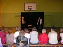 WYSTĘP ILUZJONISTY 12 maja 2008 r. w naszej szkole gościł iluzjonista. Zebranym na sali gimnastycznej przedszkolakom, uczniom szkoły podstawowej oraz młodzieży gimnazjalnej zaprezentował swoje umiejętności w dziedzinie "magii". Był to pokaz niezwykłej zręczności, a może prawdziwych czarów. Różne przedmioty w przedziwny sposób znikały w rękach naszego gościa, by po chwili pojawić się w niespodziewanym miejscu, na przykład w uchu jednego z uczniów. Mocne węzły na grubych sznurach rozwiązywały się za jednym pociągnięciem sprawnej dłoni, karty zmieniały swoje położenie, a woda w magicznych czarkach raz pojawiała się, raz znikała. Magik spośród zgromadzonych na sali uczniów wybrał asystentów, którzy mieli pomagać mu w prezentowaniu różnych sztuczek. Publiczność nagradzała każdy udany trik gromkimi brawami, a niekiedy wybuchami śmiechu. Po skończonym występie nie było końca pytaniom, kiedy iluzjonista odwiedzi naszą szkołę ponownie. mgr Anna Zych