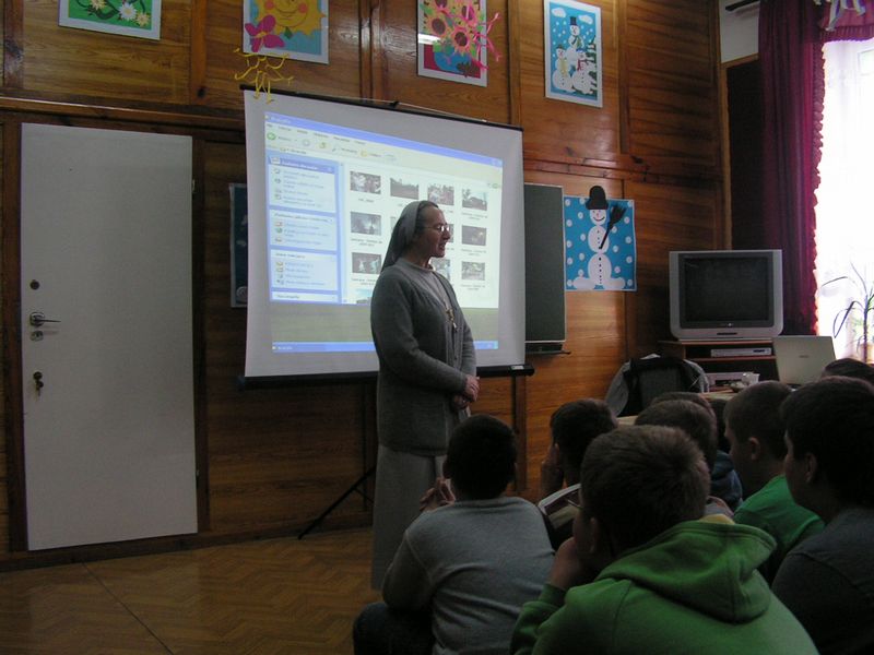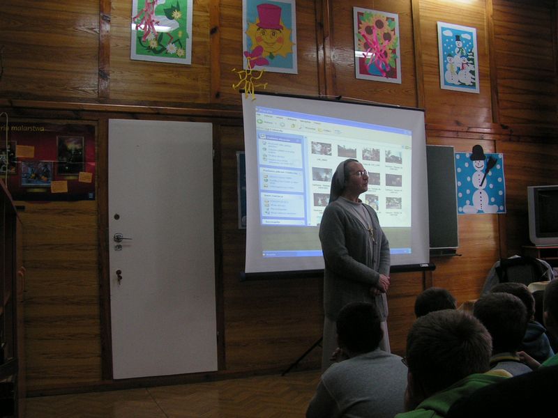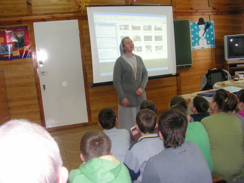 26 lutego na zaproszenie Samorządu Uczniowskiego przybył do naszej szkoły niezwykły gość - siostra Salvatoris (Kazimiera) Smaluch - pochodząca z Uszwi misjonarka ze Zgromadzenia Sióstr św. Józefa, pracująca obecnie na misjach w Brazylii. W spotkaniu z misjonarką udział wzięli uczniowie klas IV-VI. Siostra Salvatoris z wielkim zaangażowaniem opowiadała o swym powołaniu zakonnym i o realizacji życiowego marzenia, jakim był wyjazd na misje. Od 2004 roku siostra przebywa na placówce misyjnej w Kurytybie, gdzie siostry św. Józefa mają nowicjat, prowadzą przedszkole, roztaczają opiekę nad ubogimi rodzinami zamieszkującymi brazylijskie slumsy zwane favelami, a także prowadzą katechizację na północy Brazylii, w najbiedniejszym rejonie kraju. W czasie dwugodzinnego spotkania nasi uczniowie dowiedzieli się wielu ciekawych rzeczy o kulturze, życiu codziennym i religijnym tamtejszej ludności. Wszyscy z zaciekawieniem słuchali opowieści siostry misjonarki o Brazylii, kraju olbrzymich kontrastów - urzekającej przyrody, pogodnych, spontanicznych, kochających taniec ludzi, lecz także trudnej codzienności i ogromnego ubóstwa, z którymi zmagają się rdzenne plemiona indiańskie. Nasi wychowankowie przekonali się, że posługa misjonarska jest ciężką pracą, która przynosi jednak wiele radości i satysfakcji. Spotkanie z niecodziennym Gościem upłynęło w ciepłej atmosferze i na długo zostanie w naszej pamięci. mgr Anna Zych