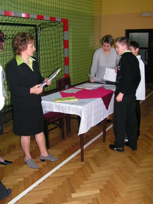 SPRAWDZIAN 2 kwietnia uczniowie klas VI przystąpili do pierwszego w swoim życiu egzaminu - sprawdzianu wiedzy. Po komisyjnym rozpakowaniu prac, Pani Dyrektor życzyła wszystkim piszącym tradycyjnego połamania piór. DZIEŃ WIOSNY 20 marca powitaliśmy w naszej szkole nadchodzącą wiosnę. Z tej okazji uczniowie klas IV-VI wzięli udział w turnieju, który sprawdzał nie tylko ich wiedzę, ale także zręczność i refleks. Impreza przebiegała pod hasłem "Jeśli kochasz ruch, zdrowy z ciebie zuch!" Pierwszym punktem programu było zaprezentowanie przez poszczególne klasy wcześniej przygotowanych plakatów i krótkich scenek promujących zdrowy tryb życia. Niektóre grupy postawiły na humor, inne na śpiew i taniec. Następnie uczniowie rywalizowali między sobą w kilkunastu konkurencjach. Był quiz wiedzy, a w nim pytania związane ze sportem i oznakami wiosny, konkurs plastyczny, w którym uczestnicy musieli narysować tulipana z zamkniętymi oczyma, wreszcie dyscypliny sportowe - wyścigi bocianów, zajączków, bieg z piłką i wiele innych. Jury złożone z Pani Dyrektor Bogumiły Jagielskiej, Ks. Prałata Jana Kudłacza oraz Pani Marty Pacury pieczołowicie przyznawało każdej klasie punkty za poszczególne zadania. Zwycięzcami tegorocznego turnieju okazali się uczniowie klasy VIb, II i III miejsce zajęli uczniowie klasy IVa i Vb. Na zakończenie emocjonującej imprezy przygotowanej przez Samorząd Uczniowski Pani Dyrektor podziękowała wszystkim za wspaniałą zabawę. Uczniowie otrzymali także pyszne pomarańcze oraz długopisy, które z pewnością przydadzą się w szkolnej karierze. mgr Anna Zych Zobacz więcej.... Nasze wyniki nauczania za śródrocze roku szkolnego 2008/2009 Średnia szkoły wyniosła 4,14. Średnia poszczególnych klas przedstawia się następująco: kl. IV a - 4,43 kl. IV b - 4,24 kl. V a - 4,12 Kl. V b - 3,95 kl. VI a - 4,24 kl. VI b - 3,88 Uczniowie wyróżnieni za średnią ocen co najmniej 4,75 i zachowanie wzorowe lub bardzo dobre: Klasa IVa : 1. Artur Babraj - 4,9; bardzo dobre 2. Konrad Czchowski - 4,8; bardzo dobre 3. Dominik Habel - 4,9; bardzo dobre 4. Agnieszka Jarosińska - 5,0; wzorowe 5. Karolina Król - 5,0; wzorowe 6. Aleksandra Legutko - 4,8; wzorowe 7. Monika Zięć - 4,8; wzorowe Klasa IVb: 1. Szczepan Bober - 4,9; bardzo dobre 2. Gabriela Jagielska - 4,8; wzorowe 3. Katarzyna Toboła - 4,8; wzorowe Klasa Va: 1. Marcin Nowak - 5,0: bardzo dobre 2. Dawid Rozciecha - 4,77; bardzo dobre 3. Grzegorz Wawryka - 4,88; bardzo dobre Klasa Vb: 1. Dawid Bober - 5,0; wzorowe 2. Jakub Hamowski - 5,0; bardzo dobre 3. Karol Wąs - 4,77; bardzo dobre Klasa VIa: 1. Oliwia Czchowska - 5,0; wzorowe 2. Patrycja Ząbkowska - 4,77; wzorowe 3. Kamila Zięć - 4,77; wzorowe Klasa VIb: 1. Marlena Burek - 4,88; wzorowe 2. Arkadiusz Kaczmarczyk - 4,88; wzorowe 3. Martyna Kotarba - 4,77; wzorowe 4. Natalia Reczek - 4,77; bardzo dobre Uczniowie wyróżnieni za 100% frekwencję: