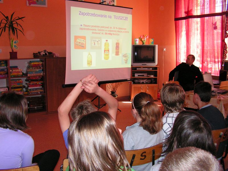 Apel poświęcony książce i czytelnictwu przygotowali uczniowie klasy IV. kiedyś samotny, chory, bez przyjaciela - ja z tobą pójdę wszędzie, poprzez zimowe wieczory, w kraje wesela. Ja cię bez trudu nauczę tego, co przydać się może choćby po latach paru. Ja tobie słowem jak kluczem w cudowny sposób otworzę pałace czarów". W programie znalazły się informacje dotyczące historii książki, ciekawostki, wiersze oraz krótka scenka pt. "W bibliotece". Nie zabrakło też rad, jak należy obchodzić się z książką, by służyła jak najdłużej. Na zakończenie apelu pani dyrektor wręczyła nagrody uczestnikom konkursów czytelniczych oraz dyplomy tym klasom, które wypożyczyły i przeczytały najwięcej książek. W kategorii klas I-III wygrała klasa I b W kategorii klas IV - VI wygrała klasa IV. mgr Józefa Zych Zobacz więcej.... PRAWIDŁOWE ŻYWIENIE - spotkanie z dietetyczką DZIEŃ ZIEMI