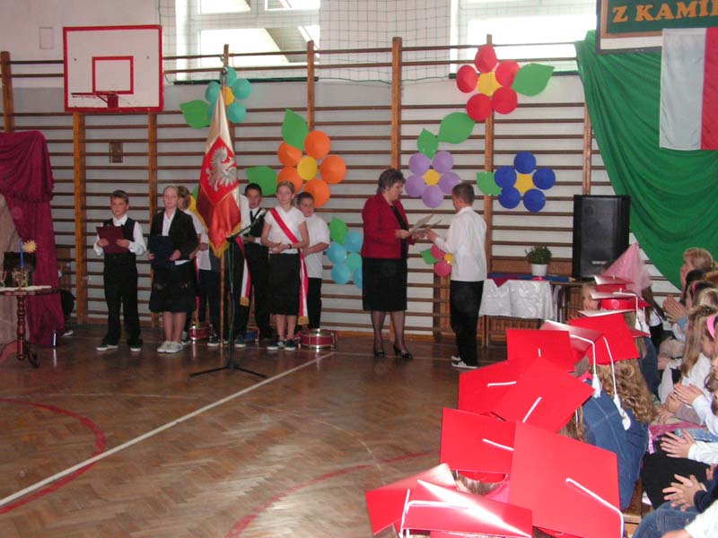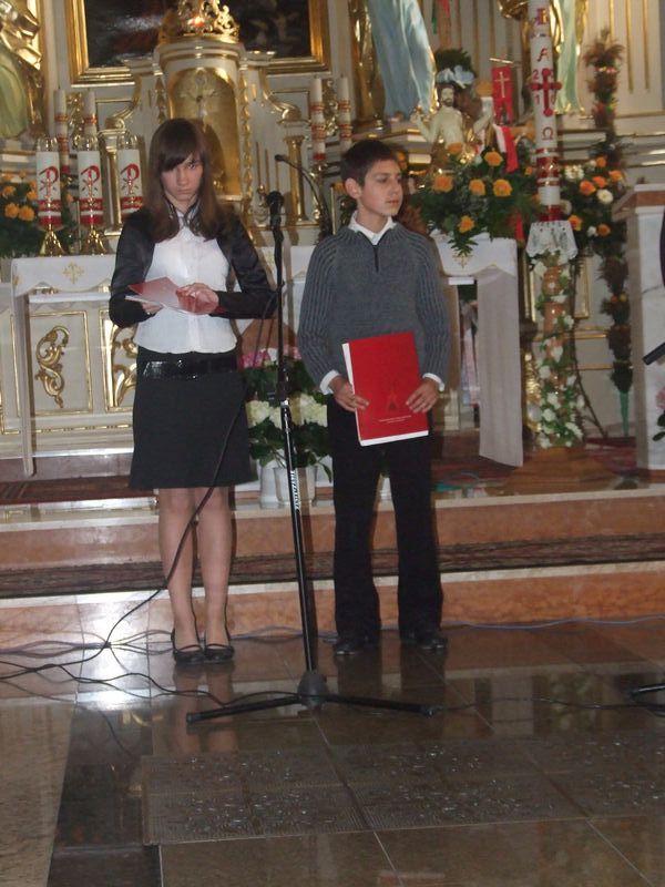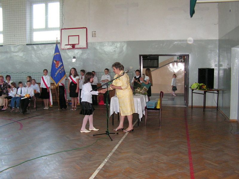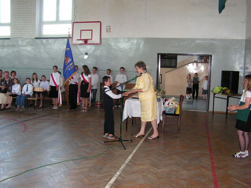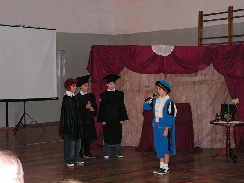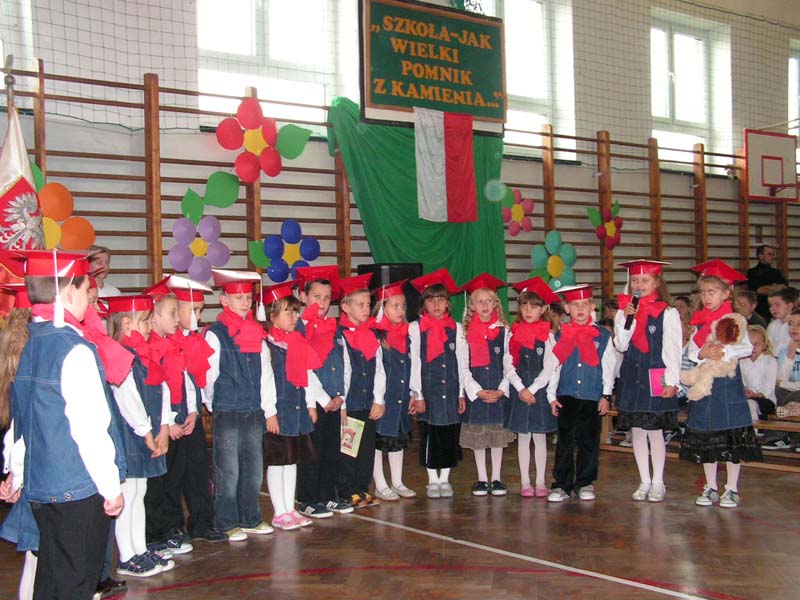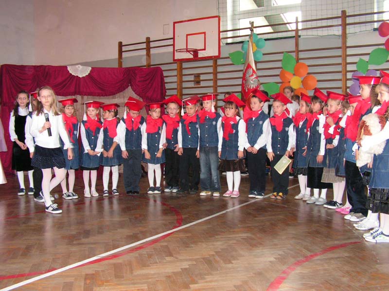 Zobacz więcej.... " BÓG SIĘ RODZI " 22 grudnia odbyły się w naszej szkole jasełka "Bóg się rodzi". W tegorocznym przedstawieniu upamiętniającym narodziny Jezusa Chrystusa udział wzięli uczniowie klasy III i IV. Piękna scenografia, specjalnie przygotowane kostiumy i zaangażowanie młodych aktorów zostało docenione przez publiczność. Występ przeplatany kolędami i pastorałkami wprawił wszystkich w świąteczny nastrój. Miłym akcentem były przygotowane przez Samorząd Uczniowski kartki z życzeniami świątecznymi, które występujący uczniowie wręczyli pracownikom szkoły. Na zakończenie Pani Dyrektor złożyła wszystkim życzenia radosnych i spokojnych świąt Bożego Narodzenia. mgr Anna Zych Zobacz więcej.... ŚWIĘTO SZKOŁY 14 listopada 2010 roku minęło 150 lat od powstania naszej szkoły. Uroczyste obchody jubileuszowe odbyły się 14 października tego roku, natomiast 15 listopada raz jeszcze cała społeczność szkolna świętowała tę radosną rocznicę. Zabawa taneczna zorganizowana przez Samorząd Uczniowski obfitowała w liczne niespodzianki, były konkursy wiedzowe, sprawnościowe, plastyczne. Na żadnych urodzinach nie może zabraknąć tortu. Nasza 150-latka również go otrzymała. Wspaniały wypiek nie zawiódł niczyich oczekiwań. Impreza trwała do godzin popołudniowych. Wszyscy bawili się znakomicie. Z niecierpliwością czekamy na kolejny jubileusz! mgr Anna Zych Zobacz więcej.... Wstań, Polsko moja !
