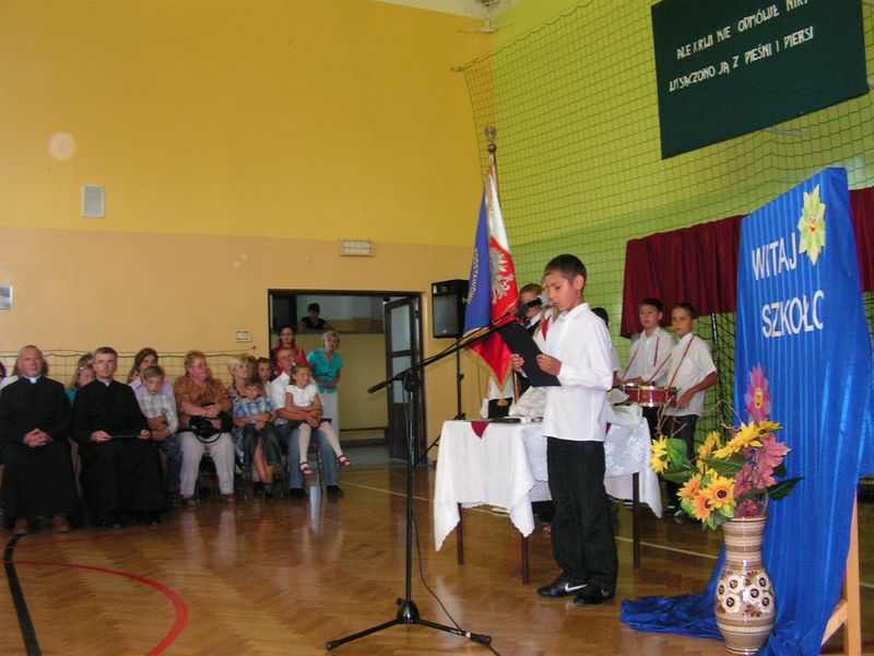 Po części artystycznej przedstawiciele Samorządu Uczniowskiego i Rady Rodziców złożyli serdeczne życzenia wszystkim pracownikom szkoły i wręczyli kwiaty.w dniu waszego święta staje tu przed wami, dziatwa uśmiechnięta, aby wam przekazać najlepsze życzenia i wyrazić słowem dzisiaj swe pragnienia. Niechaj w dobrym zdrowiu płyną wasze dni, niech się staną jawą wasze piękne sny. Niechaj trud wasz zawsze plon obfity daje, niechaj wartość waszą cała Polska zna. Wiemy, jak wam ciężko bywa nieraz z nami. Trudna w szkole praca, pojmujemy sami. Lecz choć ciężka droga wzniosłe nasze cele. Serce, co nas kocha niech przebaczy wiele. INAUGURACJA ROKU SZKOLNEGO 2010/2011 Wybiła już godzina! Dzwonek! Rok szkolny się zaczyna. Znów dni popłyną pracowite Nad książką szkolną, nad zeszytem... Rozpoczynając nowy rok szkolny, życzymy wszystkim uczniom wielu sukcesów w nauce, radości z osiąganych wyników, nieustannej chęci pogłębiania wiedzy i nabywania nowych umiejętności. Poniżej zamieszczamy zdjęcia z uroczystej inauguracji nowego roku szkolnego. mgr Anna Zych ZAKOŃCZENIE ROKU SZKOLNEGO 2009/2010 ŻYCIE SKŁADA SIĘ Z PRZYWITAŃ I POŻEGNAŃ |