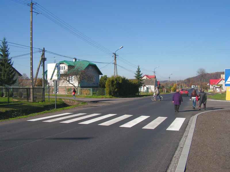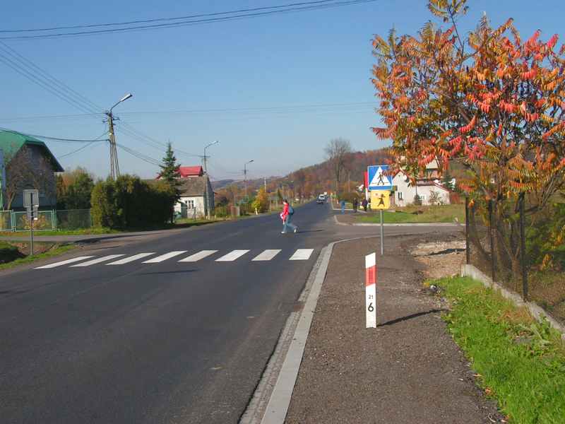 w województwie małopolskim. Powierzchnia przypominająca kształtem nieregularny prostokąt wynosi 1198,5 ha. Wieś liczy 1541 mieszkańców. Z roku na rok domostw przybywa. Miejscowością graniczącą jest Zawada Uszewska, gdzie mieszka 502 osoby. przygotowany przez Publiczną Szkołę Podstawową w Uszwi Wspólnymi obiektami obu tych miejscowości są: ośrodek zdrowia, kościół, sklepy, świetlica oraz szkoły: podstawowa, gdzie uczy się 198 uczniów i gimnazjum kształcące 122 uczniów, a także przedszkole, z którego korzysta 62 dzieci. Biegnąca wzdłuż rzeki Uszwicy droga krajowa z Brzeska do Nowego Sącza dzieli wieś na część wschodnią i zachodnią. Gwałtowny rozwój motoryzacji, oprócz pozytywnych cech, niesie różne zagrożenia - przede wszystkim w postaci wypadków drogowych, które często kończą się tragicznie. Ich przyczyną jest najczęściej nieprawidłowe zachowanie uczestników ruchu: łamanie prawa drogowego, przekraczanie dozwolonych szybkości, jazda w stanie nietrzeźwym, brawura - obserwowana szczególnie wśród młodych kierowców, przechodzenie przez jezdnię w miejscach niedozwolonych, nagłe wtargnięcia na jezdnię, brak krytycyzmu i wyobraźni, ale też ograniczony rozwój infrastruktury komunikacyjnej: zły stan naszych dróg, brak oznakowań i odpowiednich zabezpieczeń. Według danych uzyskanych z Powiatowej Komendy Policji w Brzesku, na przestrzeni kilku lat w Uszwi wydarzyło się 28 wypadków drogowych, w których śmierć poniosło 10 osób, a 41 zostało rannych. W tym samym czasie zaistniało 69 kolizji drogowych. Brak wyobraźni i rozsądku u niektórych kierowców obserwowany jest tu niemal każdego dnia. Długi prosty odcinek drogi sprzyja rozwijaniu nadmiernych prędkości oraz wyprzedzaniu innych pojazdów w miejscach niedozwolonych, co głównie było powodem śmiertelnych wypadków i kolizji. Za każdą ofiarą wypadku stoi ogromna tragedia ludzka, którą uświadamiamy sobie zwykle dopiero wtedy, gdy dotyka ona naszych najbliższych. Szczególnie wstrząsające są zdarzenia, w których ofiarami wypadków są dzieci. Takie tragiczne wydarzenie w naszej miejscowości miało miejsce pierwszego dnia ostatnich wakacji, kiedy to Dominika - uczennica kl. II zginęła pod kołami rozpędzonego samochodu. Wszyscy odczuliśmy to bardzo boleśnie. Zdrowie, życie i bezpieczeństwo dzieci stanowią najwyższą wartość, o którą powinni się troszczyć wspólnie rodzice, nauczyciele, władze samorządowe oraz organizatorzy ruchu drogowego. Mając obowiązek uczynić wszystko, aby nie stało się im nic złego nie tylko w budynku szkolnym ale także w drodze do szkoły i ze szkoły, jak również podczas uczestnictwa w ruchu drogowym w czasie wolnym, nasza szkoła podejmuje szereg działań. Zadania z zakresu wychowania komunikacyjnego są systematycznie wplatane w realizację programu nauczania. Staramy się kształtować u uczniów postawę odpowiedzialności za własne życie i zdrowie, jak i za zdrowie innych. Poszerzamy wiedzę na temat zasad i przepisów ruchu drogowego, poruszania się pojazdów w różnych warunkach, przyczyn wypadków na drodze. Rozwijamy wyobraźnię i umiejętność właściwego zachowania się na drodze. Współpracujemy z Powiatową Komendą Policji w Brzesku, organizując wspólne spotkania informacyjne przedstawicieli policji z uczniami i rodzicami. Co roku klasy czwarte są przygotowywane do egzaminu na Kartę Rowerową, a klasy pierwsze otrzymują odblaski. Organizujemy zabawy i konkursy mające na celu utrwalanie dobrych nawyków uczestnika ruchu drogowego. Planujemy zorganizowanie dla rodziców kursu udzielania pierwszej pomocy. W naszej miejscowości są miejsca, które w obecnym stanie zagrażają bezpieczeństwu dzieci i młodzieży. Marzeniem naszym jest aby ten stan zmienić. Przygotowany przez nas projekt podniesienia poziomu bezpieczeństwa w naszej miejscowości, zawiera szkice i fotografie z opisami miejsc najbardziej zagrażających zdrowiu i życiu naszych uczniów. Propozycje zmian przedstawiliśmy w opisach zdjęć oraz na jednym z wykonanych szkiców. Realizacja przedstawionych tu zadań może uchronić niejedno młode życie i oddalić groźbę tragicznych okaleczeń doznanych w wyniku wypadków drogowych. Głęboko w to wierzymy. Proponowany stan po zmianach Zdjęcia pokazują odcinek drogi biegnącej obok budynku szkoły podstawowej i gimnazjum, ośrodka zdrowia i sklepów. Droga ta prowadzi od głównego skrzyżowania do kościoła. Ostre zakręty, brak oznakowań, brak zajazdu dla busa i samochodów prywatnych dowożących dzieci do szkoły - to elementy zagrażające bezpieczeństwu uczniów. Aby wyeliminować te zagrożenia należałoby podjąć takie działania jak: umieszczenie progów zwalniających z obydwu stron budynku szkoły, postawienie znaków ostrzegawczych "uwaga dzieci", namalowanie pasów bezpośrednio przed wejściem na teren szkolny, by dzieci wysiadające z pojazdów mogły bezpiecznie przejść na drugą stronę drogi, wykonanie zatoki dla pojazdów dowożących uczniów. Obecnie uczniowie wysiadają z pojazdów wprost na jezdnię. Na fotografiach pokazane jest skrzyżowanie z drogą główną. Tędy wiedzie droga do szkoły znacznej części naszych uczniów. Widać tu też nie zawsze prawidłowe zachowania przechodniów. Bezpieczne dojście do szkoły umożliwiłoby uczniom wykonanie następujących prac: namalowanie przejścia dla pieszych z drugiej strony skrzyżowania (dojście na przystanek autobusowy), umieszczenie sygnalizacji świetlnej uruchamianej za pomocą przycisku. Jest to długi prosty odcinek drogi, gdzie kierowcy często rozwijają nadmierną prędkość, dlatego umieszczenie znaku przejścia na wysięgniku nad jezdnią z lampą doświetlającą, byłoby z dala widocznym elementem zmuszającym kierowców do zachowania ostrożności. Wygrodzenie barierkami dojść do pasów uniemożliwiłoby przechodzenie przez środek skrzyżowania oraz zap